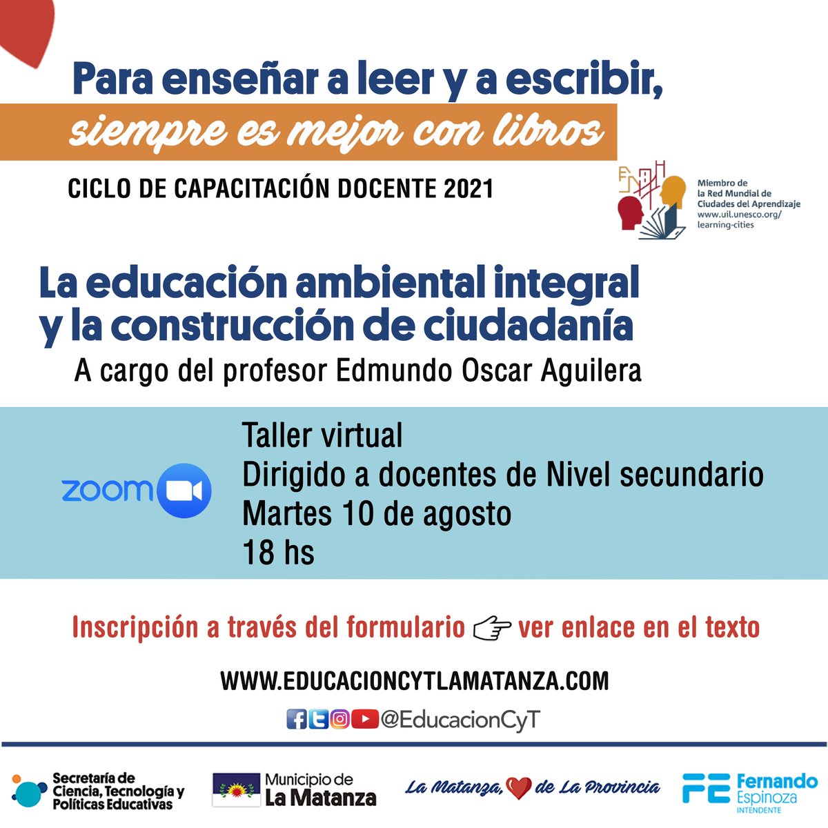 Tal como te contamos en diciembre de 2020 a partir de hoy tenés disponible información para la Inscripción a las carreras que se dictan en los Institutos de Formación Docente y Técnica del Partido de La Matanza. Sistema para el ingreso a la Universidad Nacional de La Matanza. Jueves 5 de Agosto de 2021 Está abierta la inscripción para la capacitación docente sobre la Cuenca Matanza Riachuelo Hasta el 15 de agosto hay tiempo para anotarse en el curso virtual Educación Ambiental.