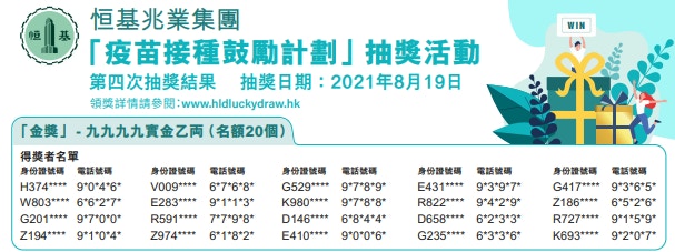 疫苗抽獎 恒基第四輪足金抽獎220名幸運兒名單一覽9月2日再抽 香港01 社會新聞